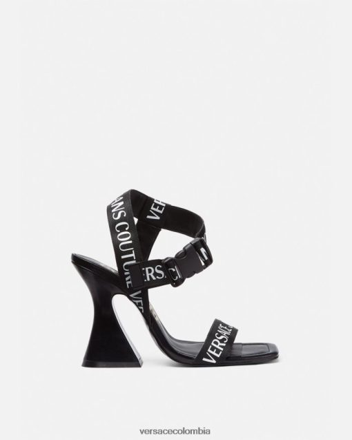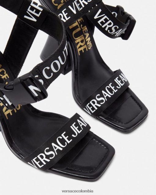 Estas sandalias de tacón alto tienen tacón en bloque y tiras de tela con cierre de hebilla y logo estampado.