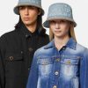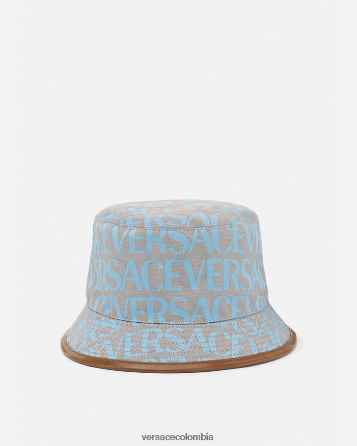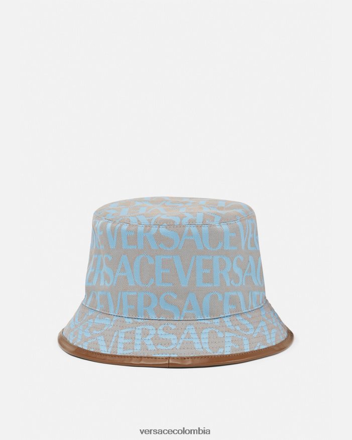 un sombrero de pescador de lona con un patrón integral de jacquard versace con ribetes de cuero.