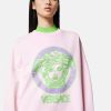 una sudadera de punto de algodón de manga larga con mangas caídas, detalles desgastados y un logo de medusa engomado con un acabado brillante.