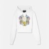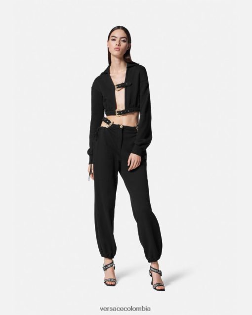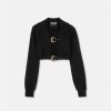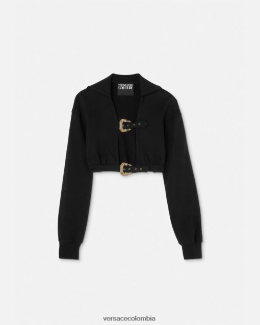 una sudadera corta con capucha, manga larga y diseño frontal abierto con correas con hebillas barrocas.