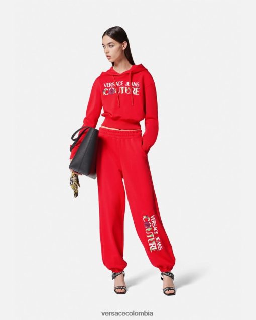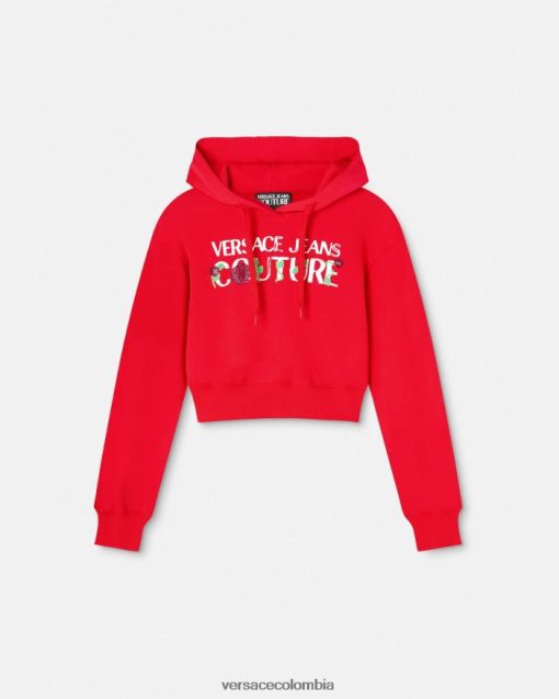Esta sudadera corta con capucha de algodón presenta un motivo de logo de rosas en la parte delantera.