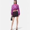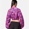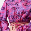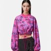 Esta sudadera corta de algodón presenta un estampado de logotipo de alta costura con un cordón envolvente que se anuda en la cintura.