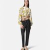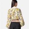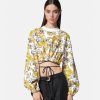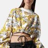 Esta sudadera corta de algodón presenta un estampado de logotipo de alta costura con un cordón envolvente que se anuda en la cintura.