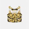 Diseñado para entrenamientos de yoga de bajo impacto, este sujetador deportivo presenta una espalda cruzada y un estampado barroco en todo el material elástico y transpirable. Las costuras inspiradas en corsés añaden un toque muy versace al estilo de ropa deportiva.