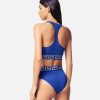 Este sujetador deportivo, con espalda de nadador y escote redondo, presenta una cinturilla elástica en el borde de greca con un motivo de medusa central.
