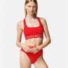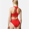 Este sujetador deportivo, con espalda de nadador y escote redondo, presenta una cinturilla elástica en el borde de greca con un motivo de medusa central.