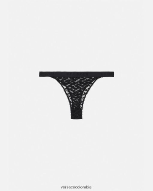 Confeccionada con tul ligero, esta tanga presenta el estampado de La Greca, un diseño de pasarela que presenta la llave griega junto con el logotipo de Versace en varios tamaños y combinaciones de colores. El delicado diseño está adornado con un sutil ribete de encaje.