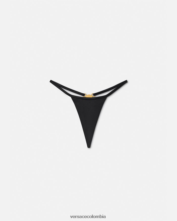 versace presenta dua lipa x versace, una colección cápsula codiseñada con dua lipa. Este tanga con efecto satinado está realzado por una medusa’95 en la tanga, un símbolo de la casa que debutó por primera vez a mediados de los años 90.