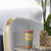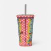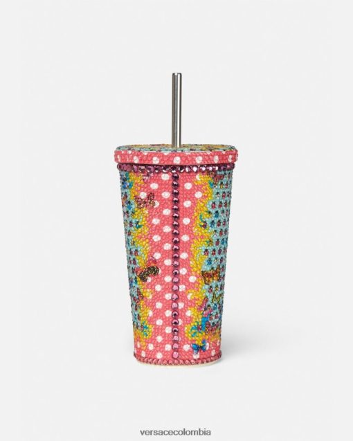 Adecuado para bebidas frías, este vaso de viaje cubierto de cristal presenta un logotipo central de Versace con mariposas, mariquitas y elementos barrocos.