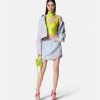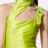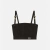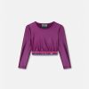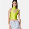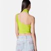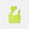 un top corto elástico y asimétrico con una hebilla barroca tonal en la correa para el hombro y cuello alto.