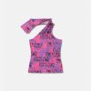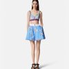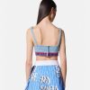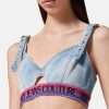 un top de mezclilla corto, con correas ajustables con hebillas barrocas y una cinturilla con logo.