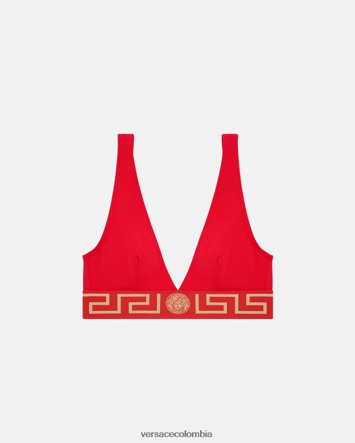 Este top de bikini triangular presenta el característico borde de greca y medusa en la cinturilla elástica y se puede combinar con las braguitas a juego.