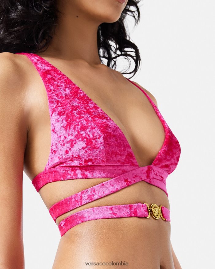 mujer top de bikini de terciopelo con Medusa ’95 Versace fucsia 2RP40F1173 ropa interior y ropa de playa