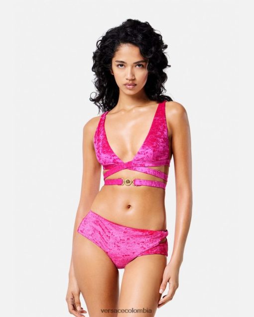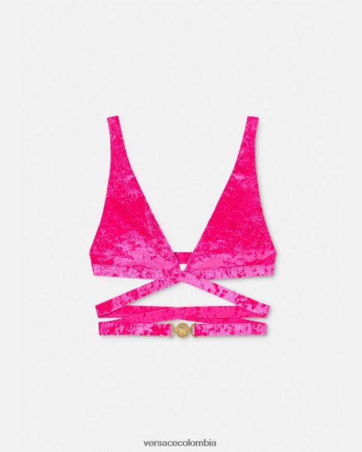 mujer top de bikini de terciopelo con Medusa ’95 Versace fucsia 2RP40F1173 ropa interior y ropa de playa