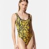 Reconocible al instante, este traje de baño cuenta con el icónico estampado barroco. El estilo clásico presenta una línea de espalda baja y una línea de pierna alta.