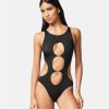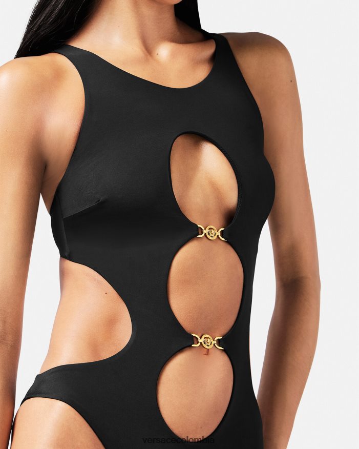 Inspirado en los emblemáticos herrajes, este traje de baño de una pieza presenta los herrajes de Medusa ’95 en el corte delantero. el estilo tiene un diseño de espalda abierta.