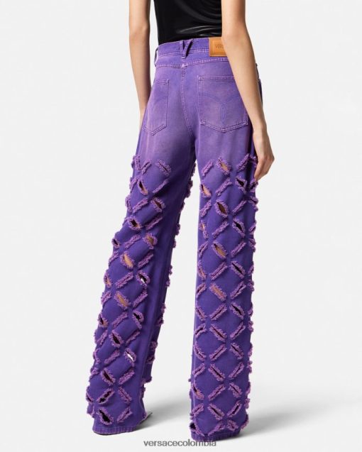 Confeccionados con mezclilla con un acabado lavado, estos jeans de pierna recta presentan cortes de diamantes desgastados cortados con láser en toda su extensión para una apariencia de inspiración grunge. Los botones de Medusa acentúan la pieza.