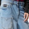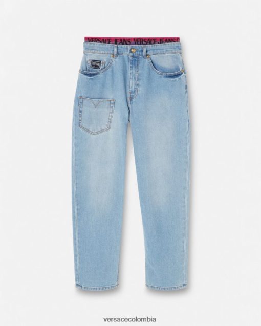 Estos jeans ajustados presentan un diseño de cinco bolsillos con calzoncillos simulados y una cinturilla con logo.