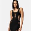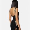 un minivestido tipo traje de baño con aberturas y una sutil tachuela de medusa en la espalda.