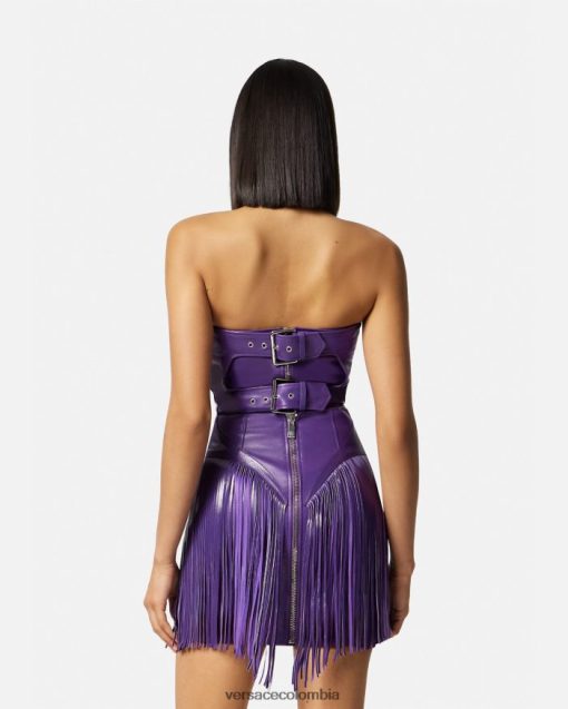 un minivestido sin mangas confeccionado íntegramente en piel flexible y con detalles de flecos en los laterales y en la espalda.