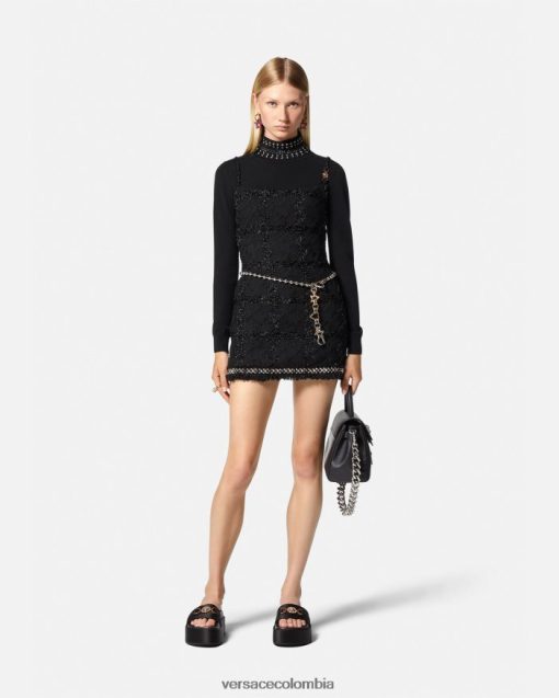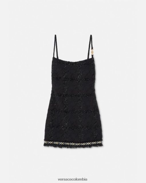 mujer vestido corto de tweed con puntas de Medusa Versace negro 2RP40F77 ropa