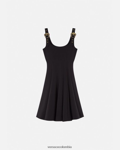 un vestido plisado con cuello cuadrado y remates de hebilla de alta costura barroca en los tirantes.
