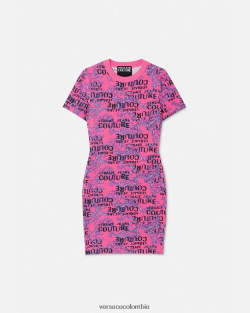 Este vestido camisero de punto tiene mangas cortas y presenta un estampado de logotipo de alta costura por toda la prenda.