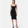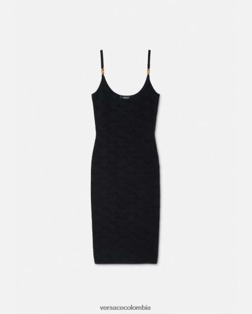 Con un patrón de La Greca de jacquard tonal, este vestido midi ajustado de canalé presenta detalles metálicos de Medusa ’95 en los tirantes de los hombros.