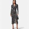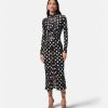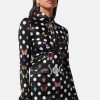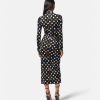 Este vestido midi camisero de punto fluido presenta un cinturón clic-clac cruzado con Medusa ’95 y un estampado integral de mariposas y mariquitas con un fondo de lunares. Este artículo forma parte de la colección cápsula codiseñada con Dua Lipa.
