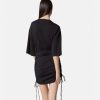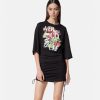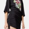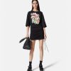 Este vestido camisero de punto con cordones tiene mangas cortas y presenta un estampado de rosas con un logo texturizado con efecto de pintura tridimensional.