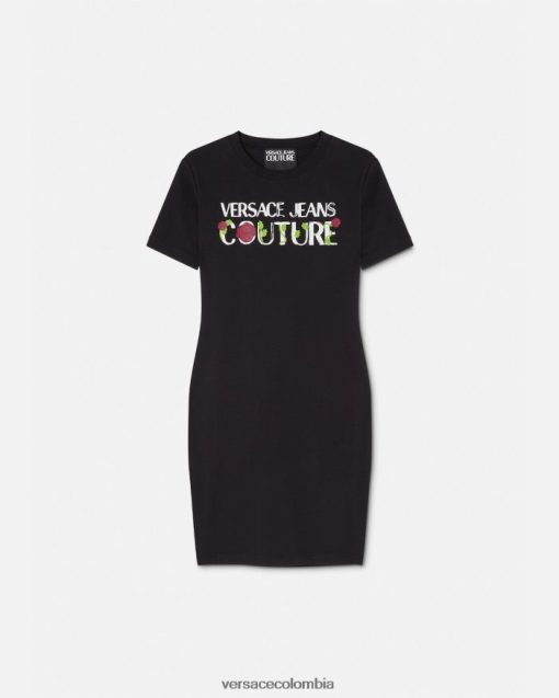 Este vestido estilo camiseta de punto tiene mangas cortas y presenta un logo de rosas estampado.