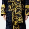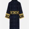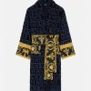 Esta suave bata de baño de felpa presenta un estampado del logo de Versace en toda la prenda y está acentuada por una manga con estampado barroco y un cinturón cruzado. Puedes personalizar tu bata de baño agregando hasta 9 personajes bordados con lentejuelas al estilo de felpa de algodón. Nuestros expertos artesanos cosen a mano cada parche de letras en la bata de baño, lo que garantiza la más alta calidad de su pieza única.