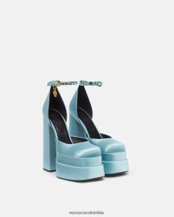 Una propuesta puntiaguda muy versace de la línea distintiva aevitas, estos zapatos de tacón de cuero cuentan con un tacón alto inclinado y una plataforma doble. Están acabados con tiras triples en el tobillo y herrajes en forma de V.