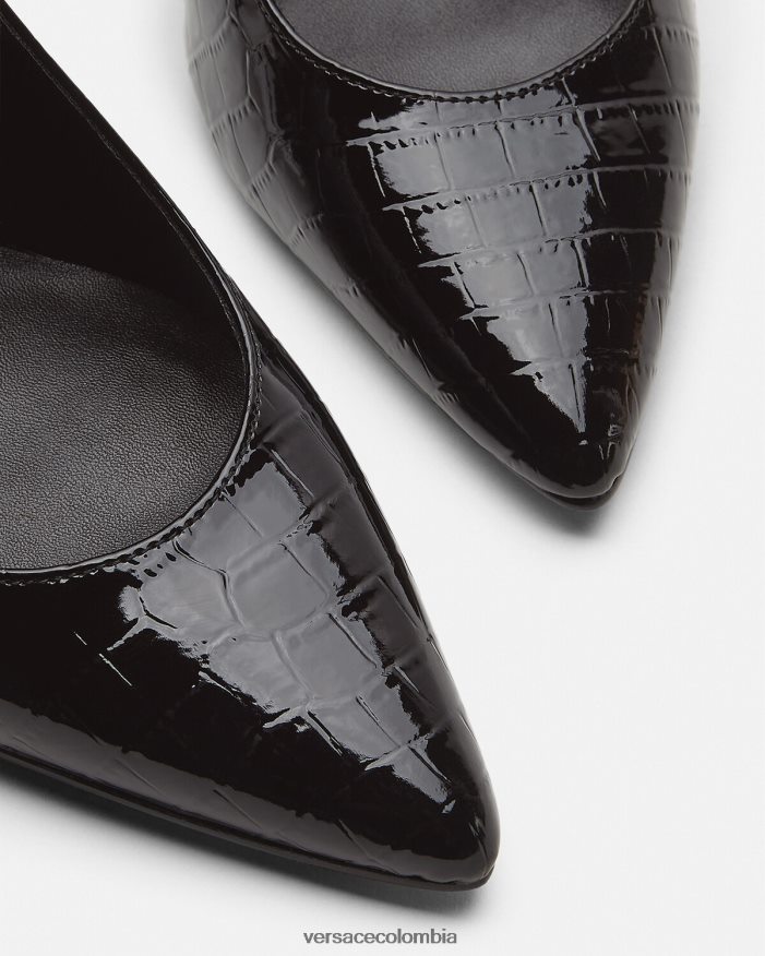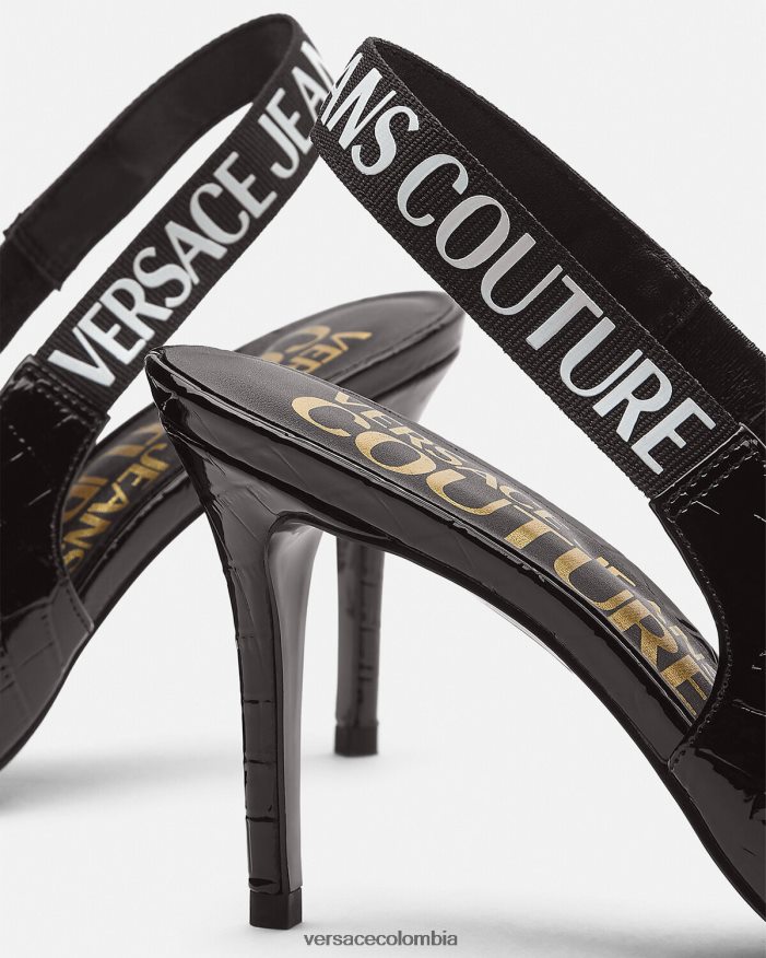Estos slingback cuentan con una correa trasera con logo estampado y efecto de cocodrilo.