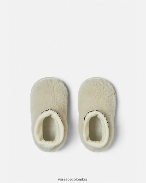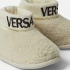 Perfectas para una pequeña fashionista, estas botas tipo calcetín están confeccionadas en esquilado de cordero y cuentan con el logotipo de Versace en el tobillo.