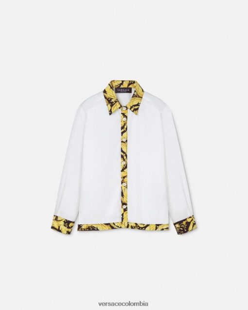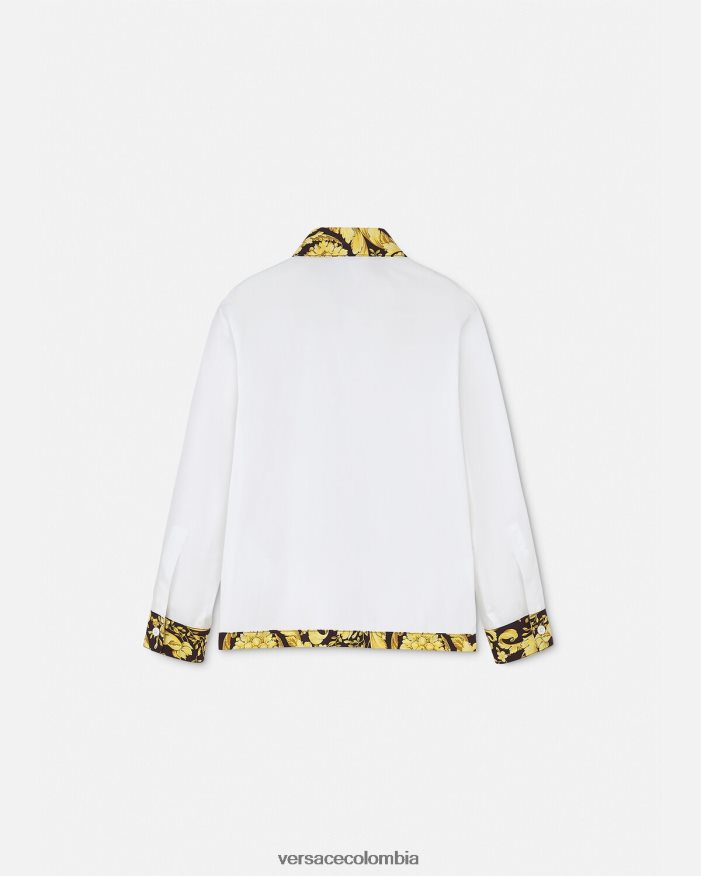 un diseño de Versace para los más pequeños: esta camisa clásica y suave presenta el estampado barroco infantil a lo largo del cuello, los botones y los dobladillos.