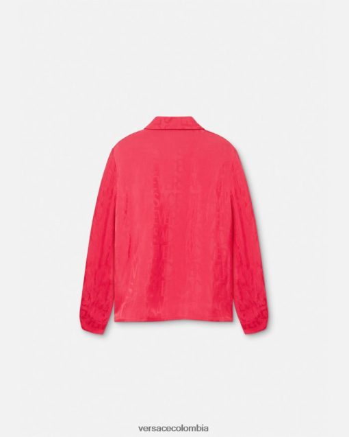 Esta camisa de manga larga presenta un estampado de jacquard satinado infantil tonal de Versace en toda su extensión con botones de medusa acentuados.