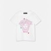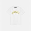 Esta camiseta de algodón de manga corta presenta el motivo del logo de Versace en la parte delantera en un color en contraste.