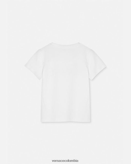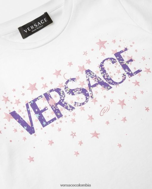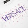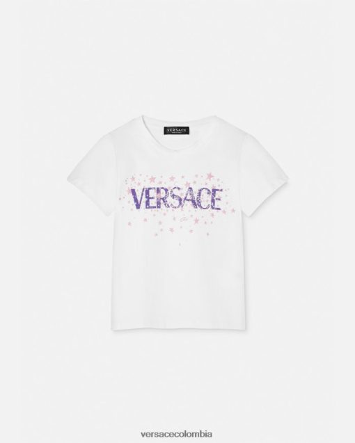 Una camiseta de manga corta de punto de algodón con estrellas brillantes y suaves al tacto sobre el estampado infantil del logotipo de Versace.