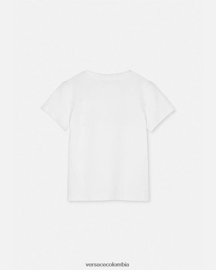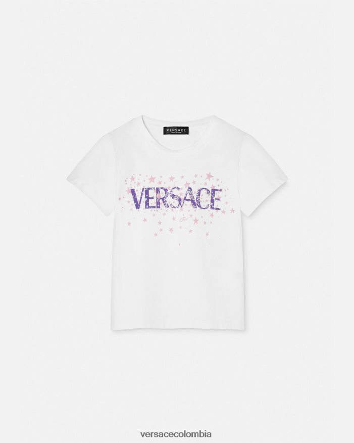 Una camiseta de manga corta de punto de algodón con estrellas brillantes y suaves al tacto sobre el estampado infantil del logotipo de Versace.