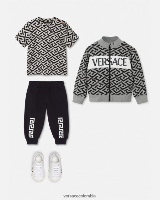 Una camiseta de manga corta para los más pequeños con el estampado La Greca Kids de Versace. Dos botones a presión en el hombro permiten quitarlo fácilmente.