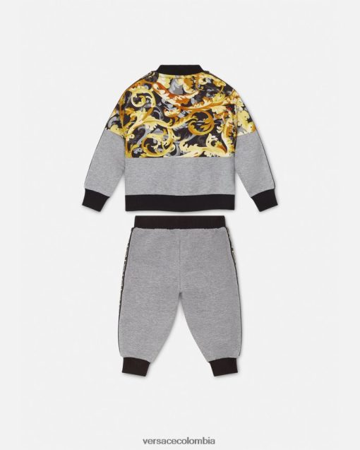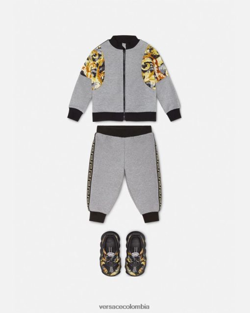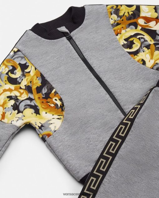 Confeccionado en felpa de algodón, este conjunto incluye una chaqueta con pantalones deportivos a juego con el estampado barrocoflage para niños. Los suéteres de felpa están adornados con detalles de greca a lo largo de las piernas.
