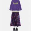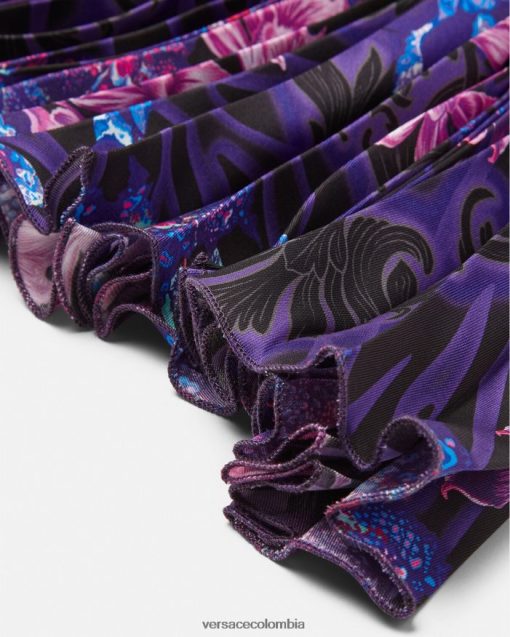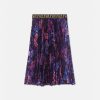 una falda larga plisada para los pequeños amantes de la moda de versace que presenta una cinturilla con borde de greca y el estampado orquídea barroco para niños, un motivo floral barroco sobre un brillante motivo de cebra.