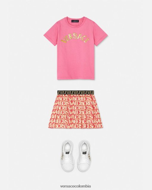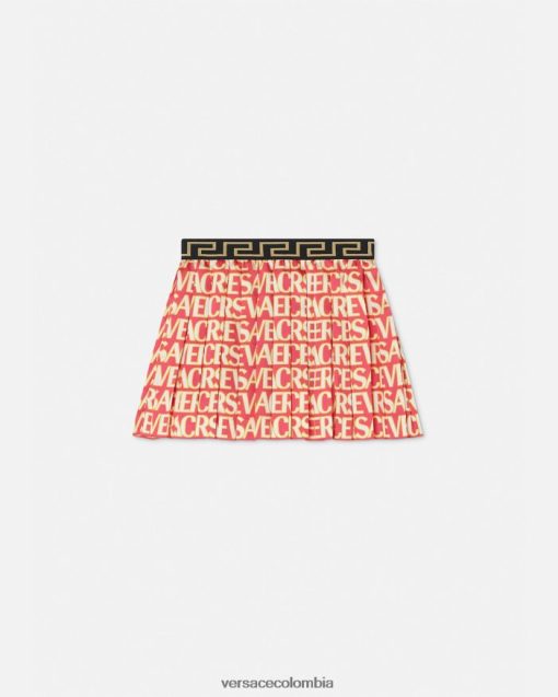 Esta minifalda plisada presenta el estampado del logo de Versace Kids en toda la prenda con una cinturilla elástica con borde de Greca en jacquard para mayor comodidad.
