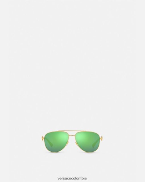 Estas gafas de sol con forma de aviador cuentan con finas monturas de metal y herrajes de medusa en el lateral.