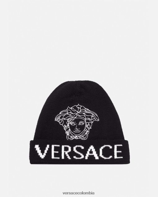 Esta gorra suave, confeccionada con cálido jacquard de lana, presenta un motivo infantil con el logo de medusa y versace.