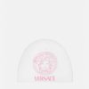 Esta gorra suave y cálida presenta un motivo de medusa y un detalle del logo de versace.