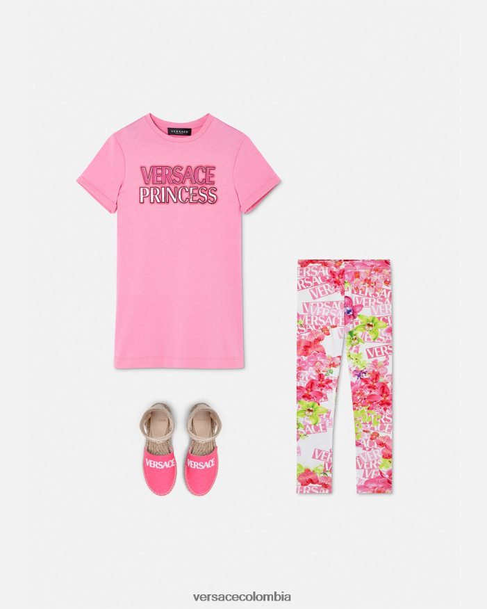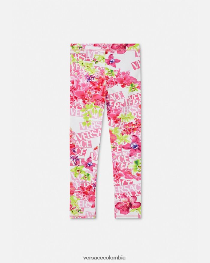 Leggings mini-me confeccionados en algodón con el logotipo de Versace estampado orquídea infantil.