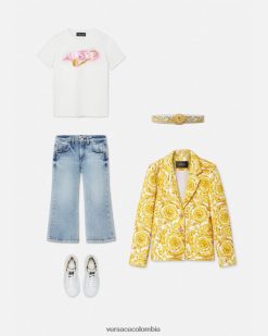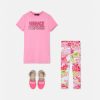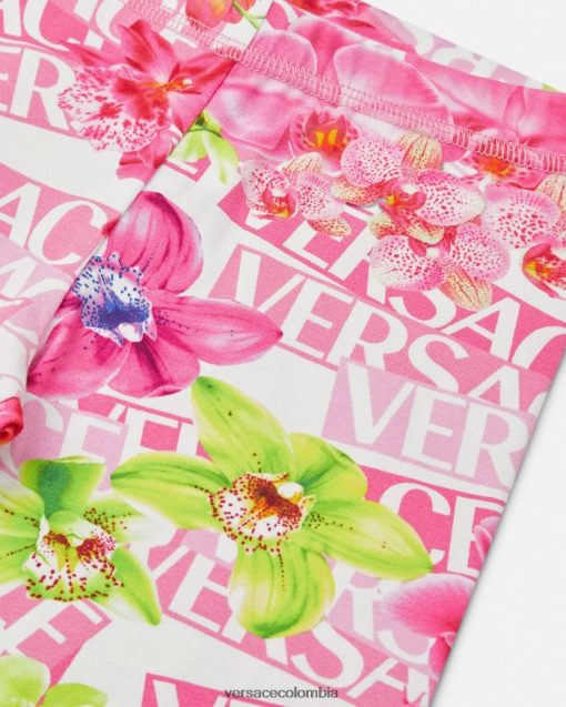 Leggings mini-me confeccionados en algodón con el logotipo de Versace estampado orquídea infantil.
