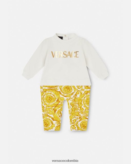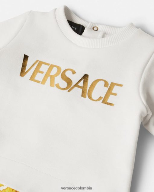 Suave y acogedor, este pelele presenta la parte inferior con estampado barroco y el logo en lámina dorada en la parte superior.